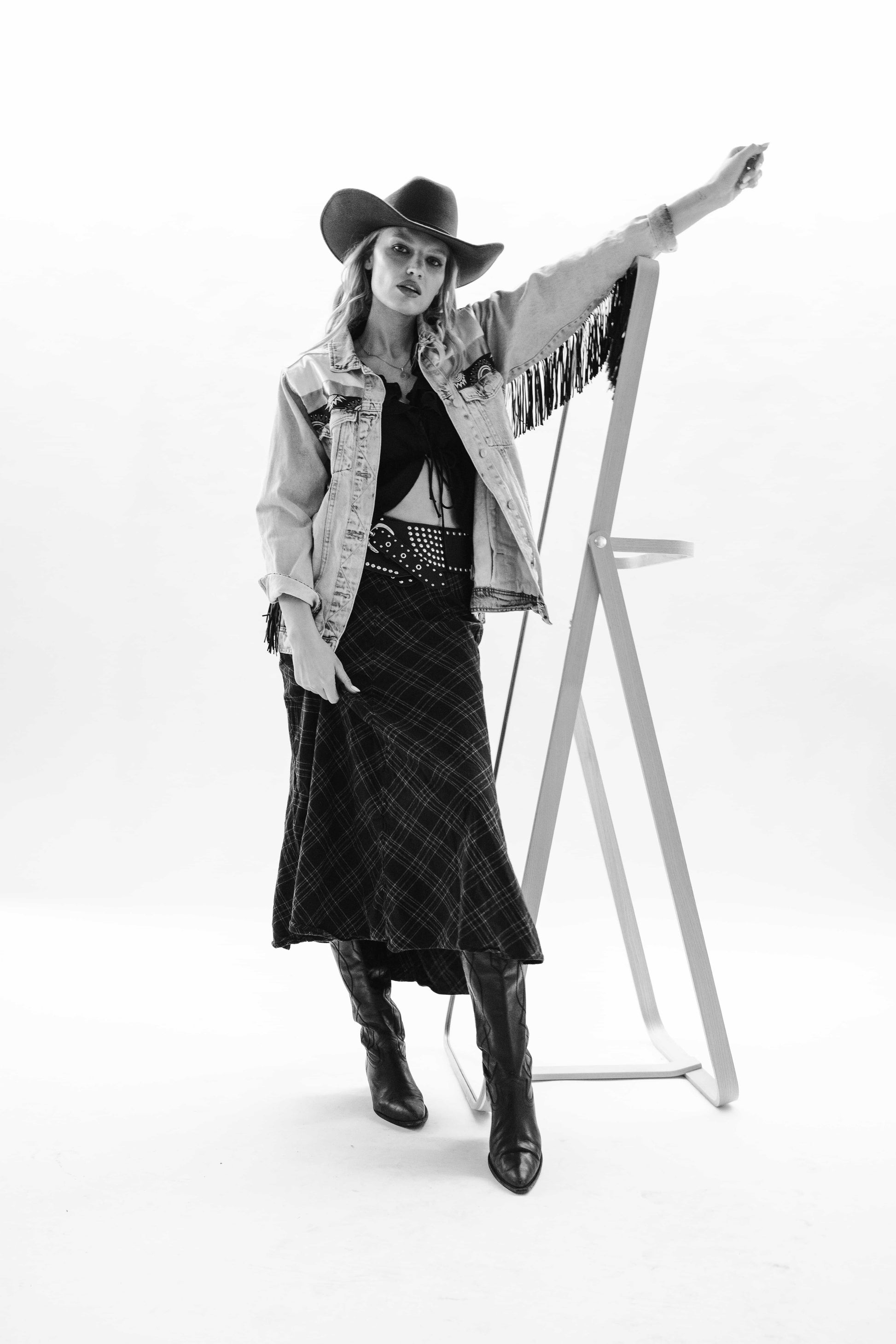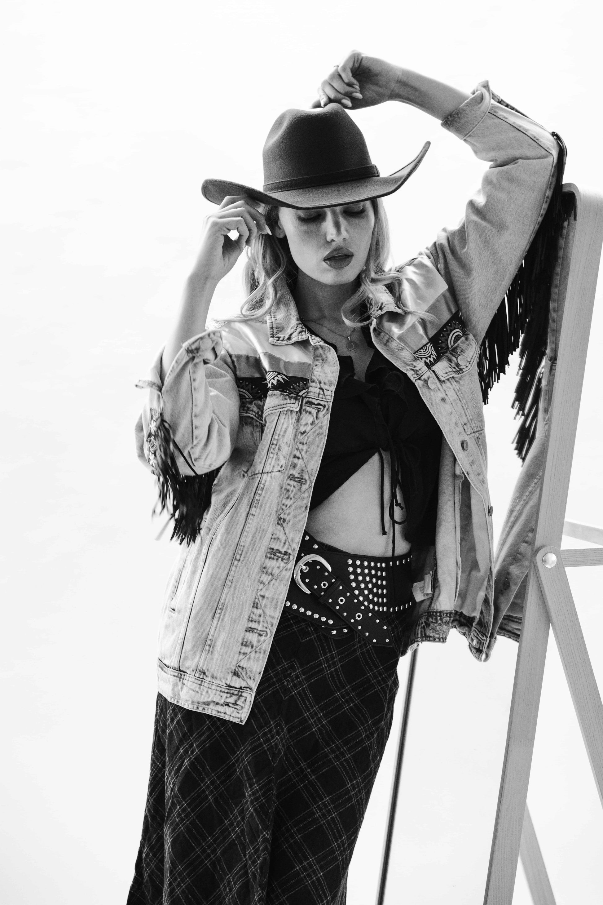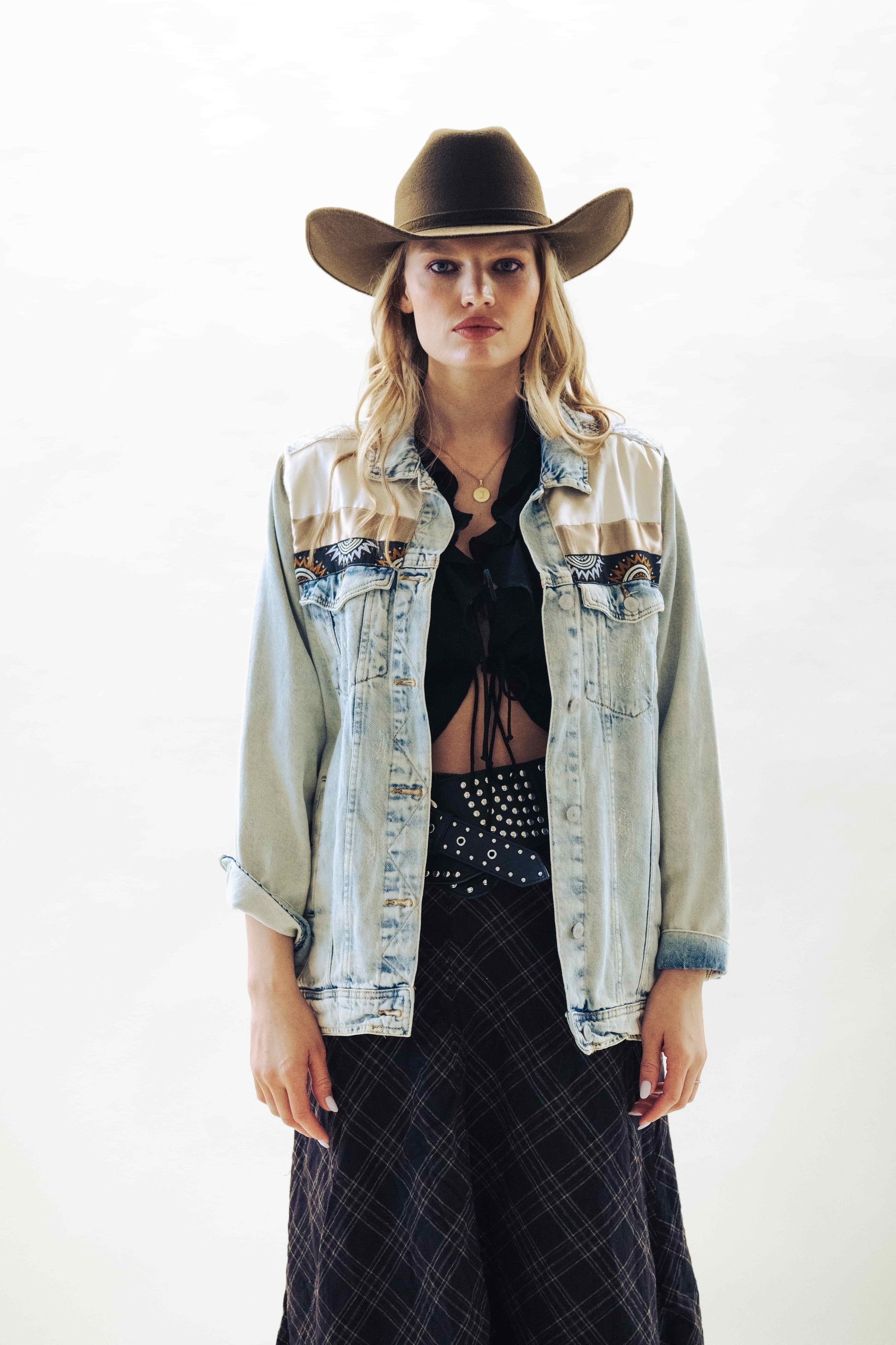 Oversized Boho bunda vyrobená z jemného denimu, ozdobená strapcami z umelej kože. Vhodná pre veľkosti S až L, modelka má výšku 179 cm a bežne nosí veľkosť S. Odporúčaná starostlivosť: prať na jemnom programe pri teplote do 30 °C, ideálne v ochrannom obale alebo obrátená naruby.