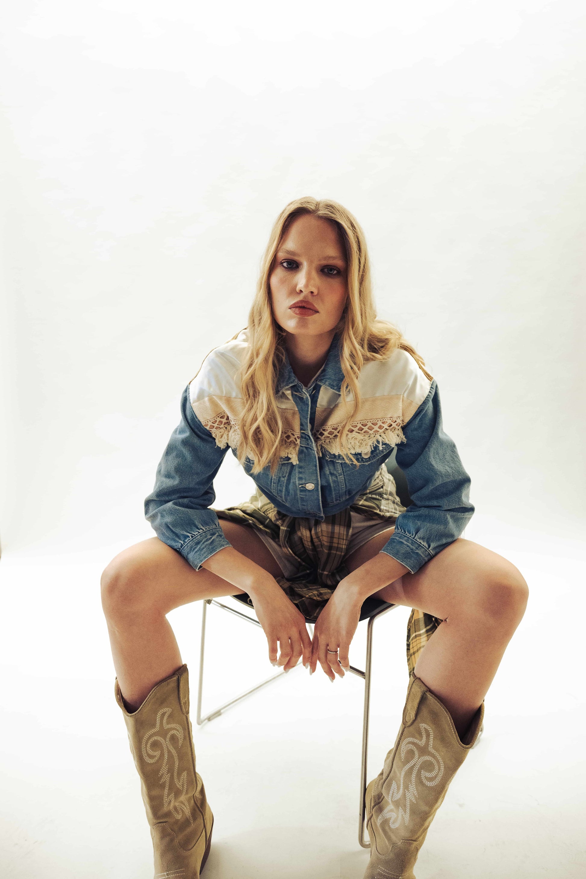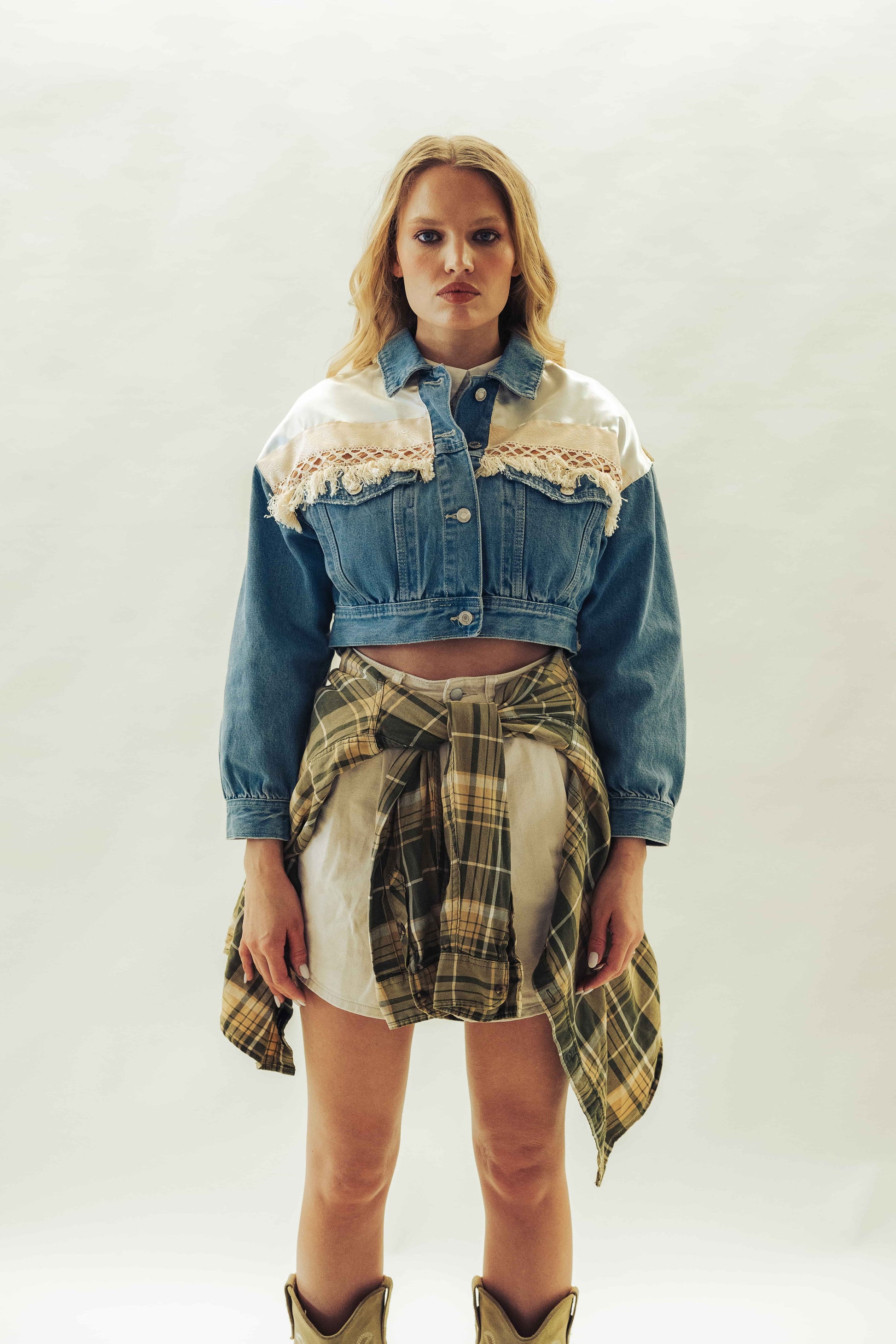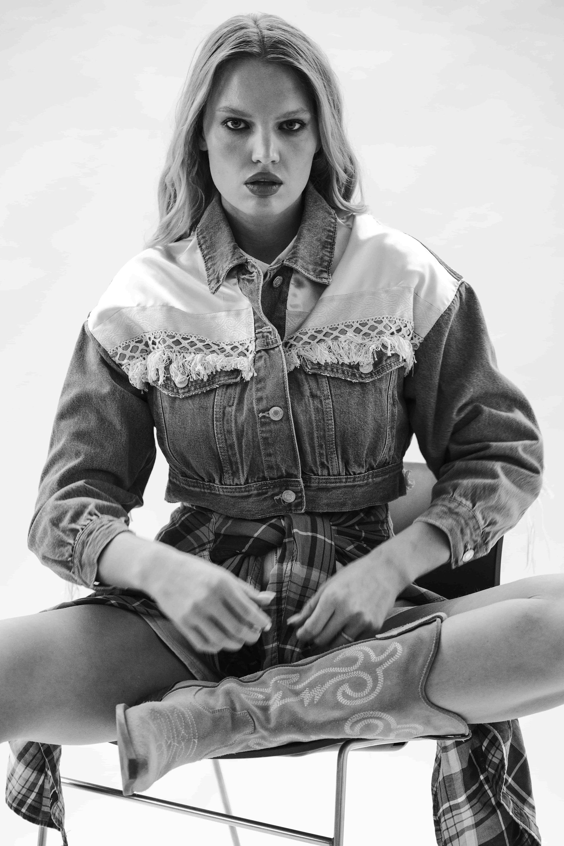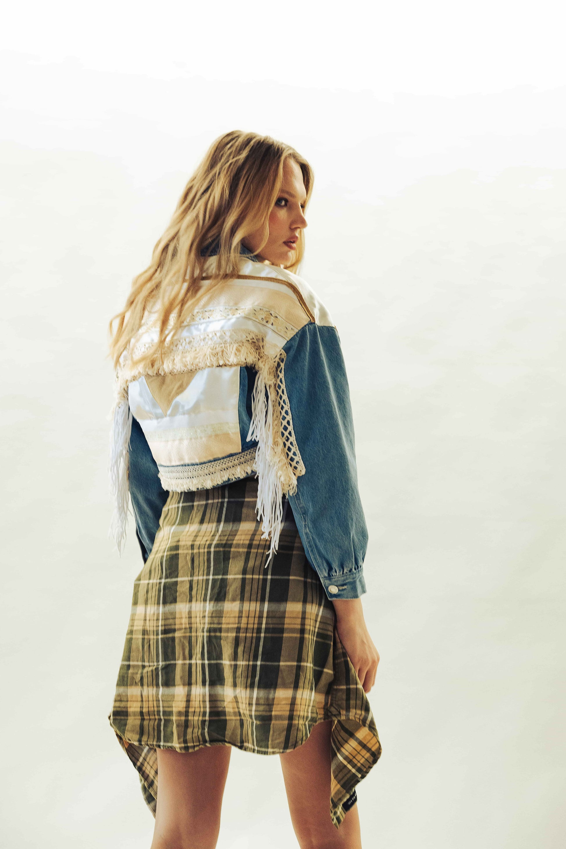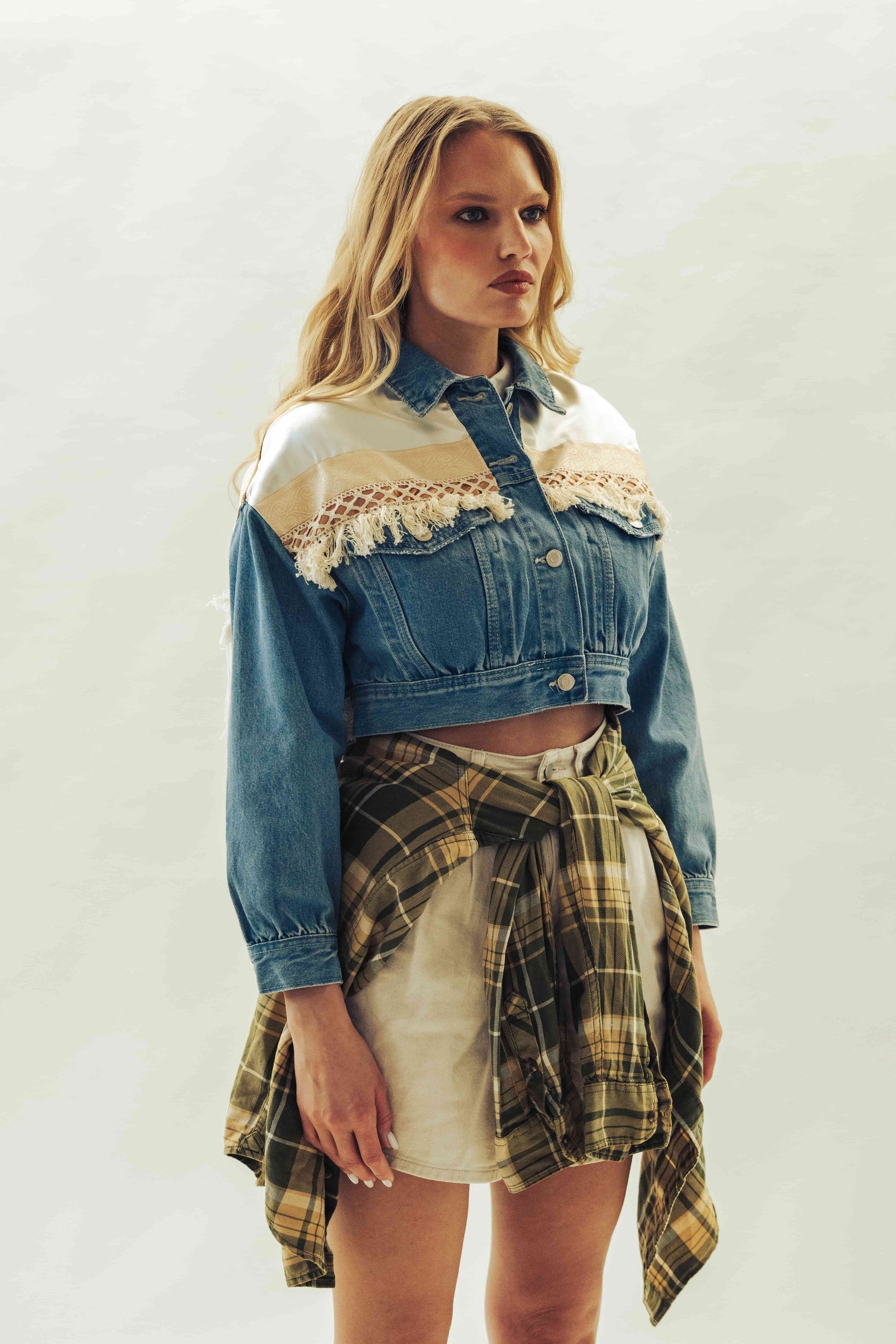 Táto krátka bunda z pevného denimu je strihaná do pása a ideálna na kombinovanie so šatami alebo sukňami. Ozdobená je strapcami z imitácie brúsenej kože, ktoré dodávajú jedinečný vzhľad. Vhodná pre veľkosti XS až M. Modelka na fotografii má výšku 179 cm a nosí veľkosť S. Odporúčame ručné čistenie pre zachovanie kvality materiálu.