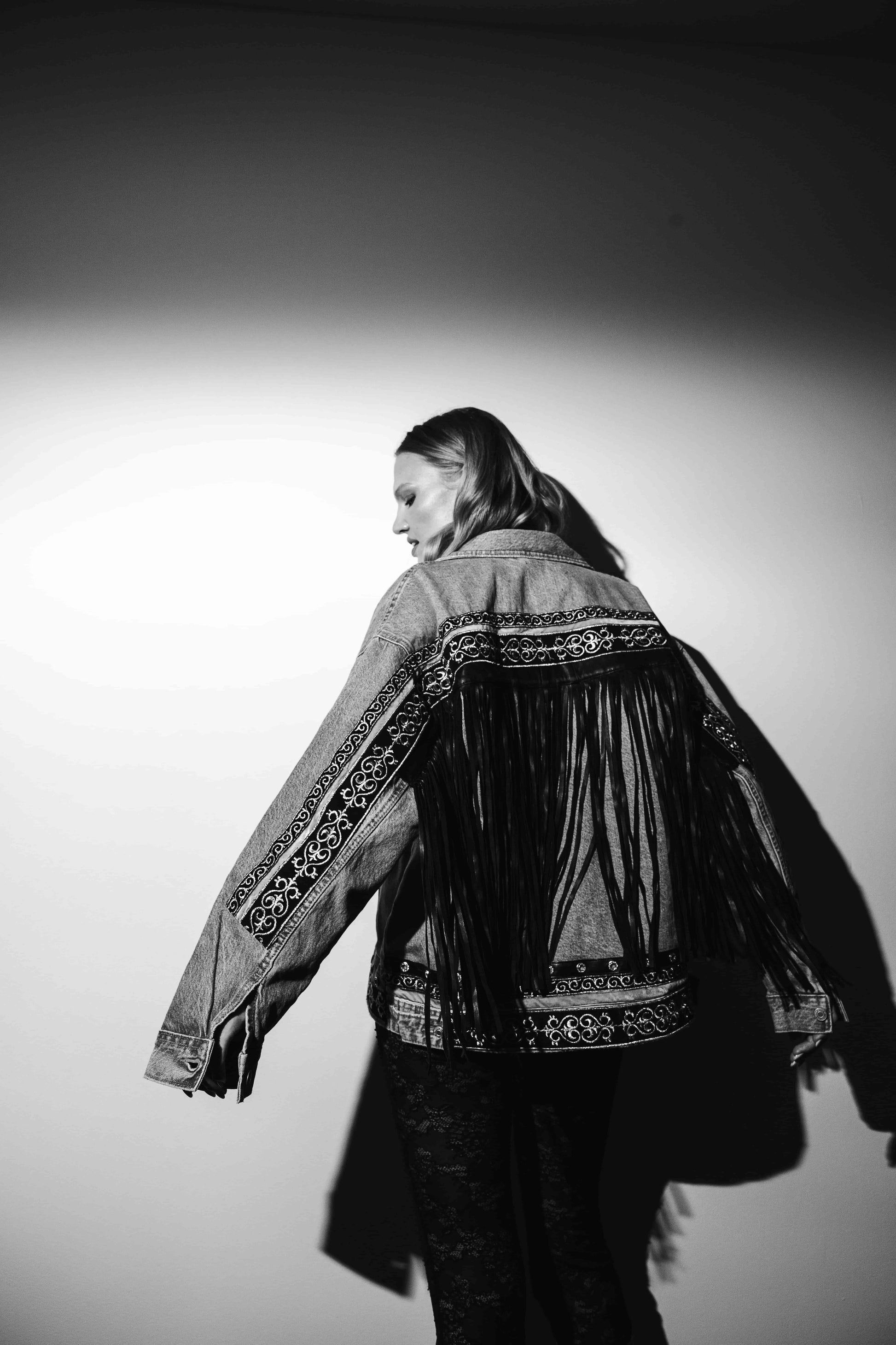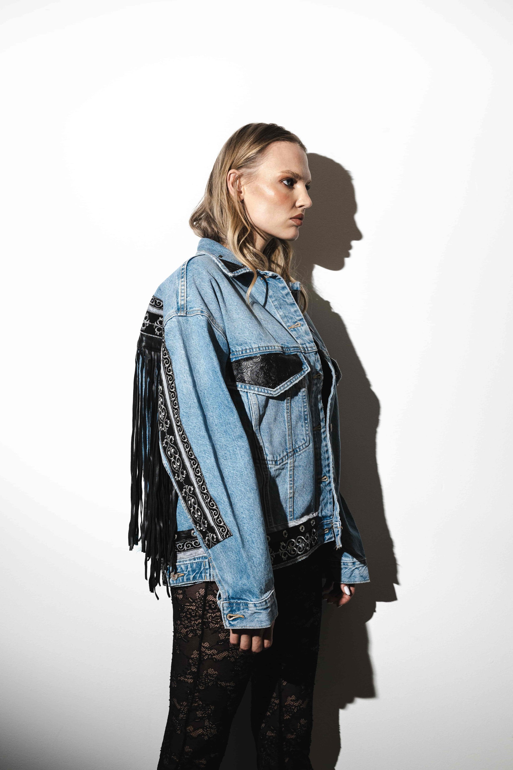 Festivalová bunda s extra dlhými koženkovými strapcami.